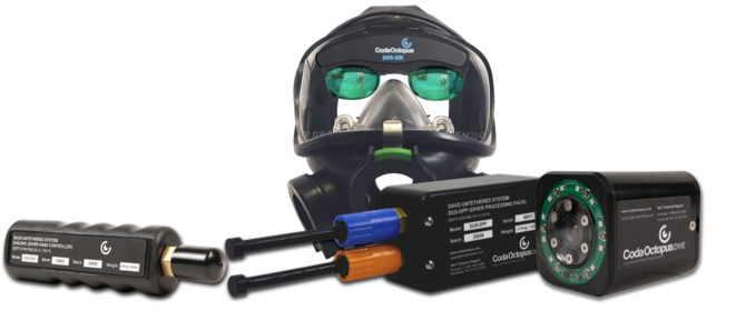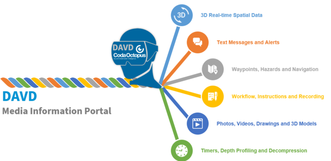 The Diver Augmented Vision Display (DAVD) is a complete end-to-end diver management solution incorporating critically a high-resolution see-through head-up display (HUD) embedded directly inside the diving helmet.