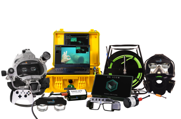The HUD is controlled from the surface by the Dive Supervisor using the supplied 4G Underwater Survey Explorer - "DAVD Edition" software suite and he is able to control all information displayed to the diver including the ability to show real-time 3D imagery of the divers environment in 1st or 3rd person perspective, regardless of the water visibility conditions facing the diver.