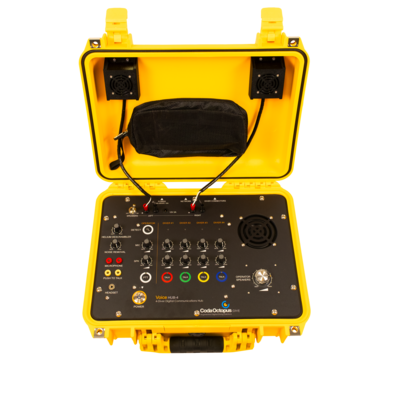 4-Diver Digital Communications Hub is a state of the art fully digital system designed to deliver the highest quality clear digital audio communication between an operator and up to 4 divers. The system, which comprises a digital surface operator console (VoiceHUB-4) and up to 4 sets of digital diver units (VoiceNODEs) and umbilical, is capable of supporting diver operations at 100m depth. 4-Diver Digital Communications Hub supports all traditional diver communications features including Push-to-Talk feature, Diver-to-Diver and selectable One-to-One communications. Additionally, using the latest in digital audio processing at source, specialist features, such as Web Control Interface for advanced features and project settings, Digital Noise Removal using AI to eliminate all but speech communication and dual-stage Helium Speech Descrambling, to improve audio communication fidelity.