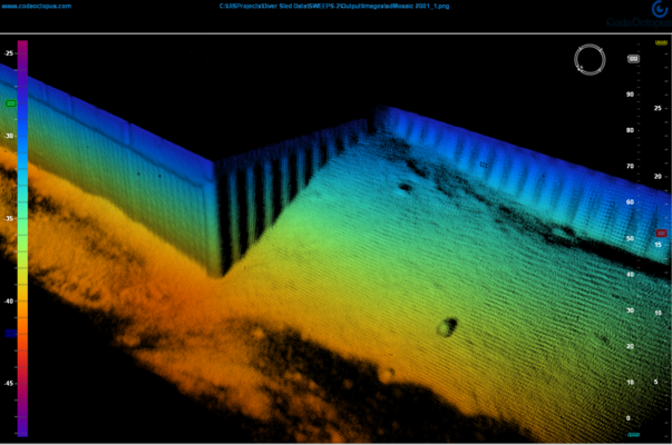 This ground-breaking technology’s ability to process all of the acoustic 3D backscatter data (up to 81 million points per ping (180x180x2,500)) within the viewing volume is CODA’s 5-D full-time series capability. Processing the complete backscatter volume now offers extended range, coverage and density of targets with the ability to detect multiple targets within a single beam footprint (in 4D) and provide critical amplitude data around targets and seabed such as layers or marine growth or sediment penetration.