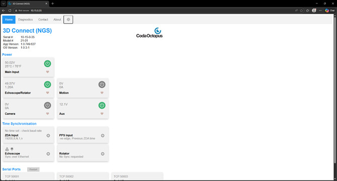 Its web-based diagnostics and monitoring interface enable simple online control of all connected devices, including power usage, which is essential for battery or generator-based power setups. Moreover, it is fully supported in all Coda Octopus software, including 4G USE®, and Construction Monitoring Solution (CMS). With the flexibility to be mounted on walls for permanent setups or used on any available vessel, the 3D Connect (NGS) offers both AC and DC power options, making it an ideal choice for deploying Echoscope PIPE NANO Gen Series® on any vessel or platform.