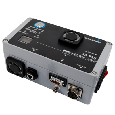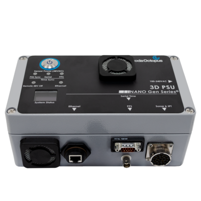 The NANO Gen Series 3D PSU is the newest generation of power, control and data integration units designed specifically for the Echoscope PIPE NANO Gen Series®. The NANO Gen Series 3D PSU supports the use Echoscope PIPE NANO Gen Series® and our latest Integrated Pan and Tilt device, the NANO IPT. Designed to effortlessly handle data and control both devices, the NANO Gen Series 3D PSU also allows both devices to be time synchronized to millisecond level accuracy for the duration of operations.