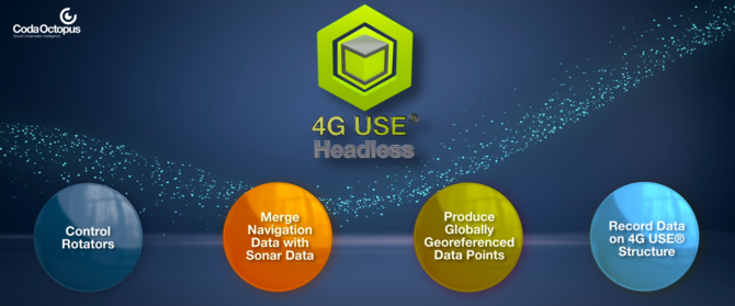 4G USE® Headless is Coda Octopus’s cross-platform control and data-management application designed specifically for autonomous deployments of the Echoscope PIPE® sonar. Built on the proven 4G USE® architecture, it delivers the full suite of real-time integration and control capabilities in a machine-operated, API-driven format ideal for OEM integration. platform control and data management application designed specifically for autonomous deployments of the time operated, API driven format ideal for OEM integration.